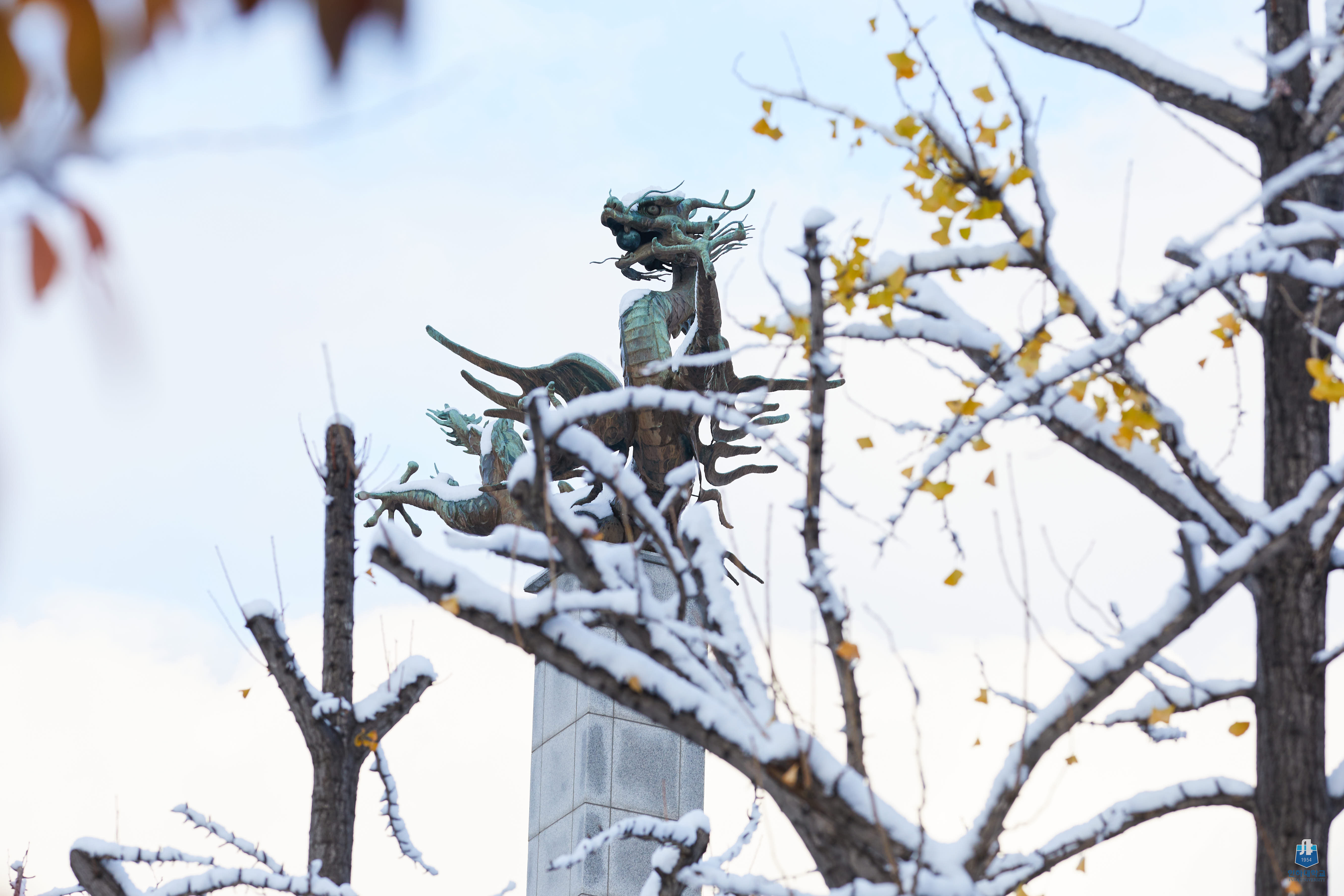 ▲ 눈이내린 인하대학교의 겨울 본관 전경.