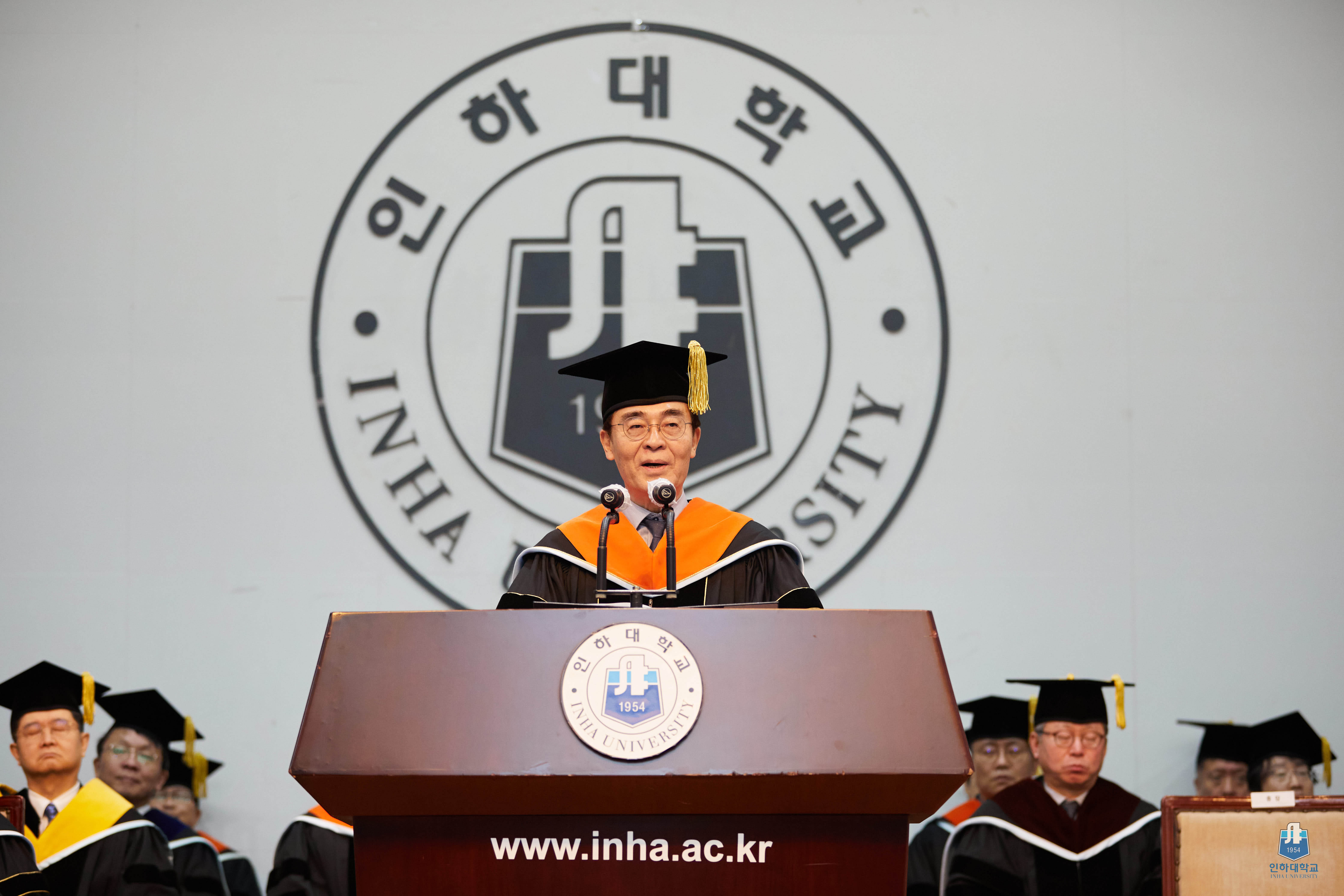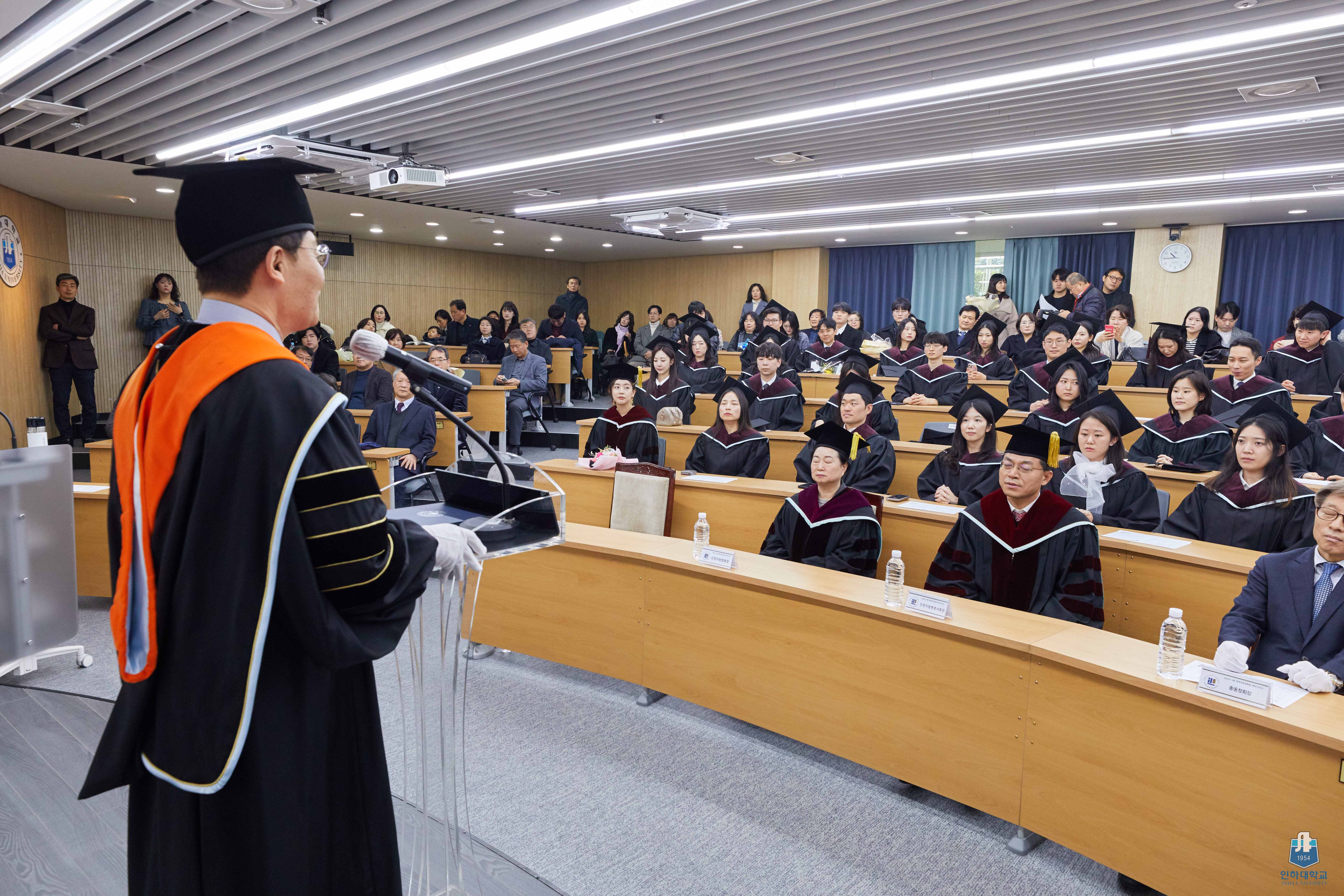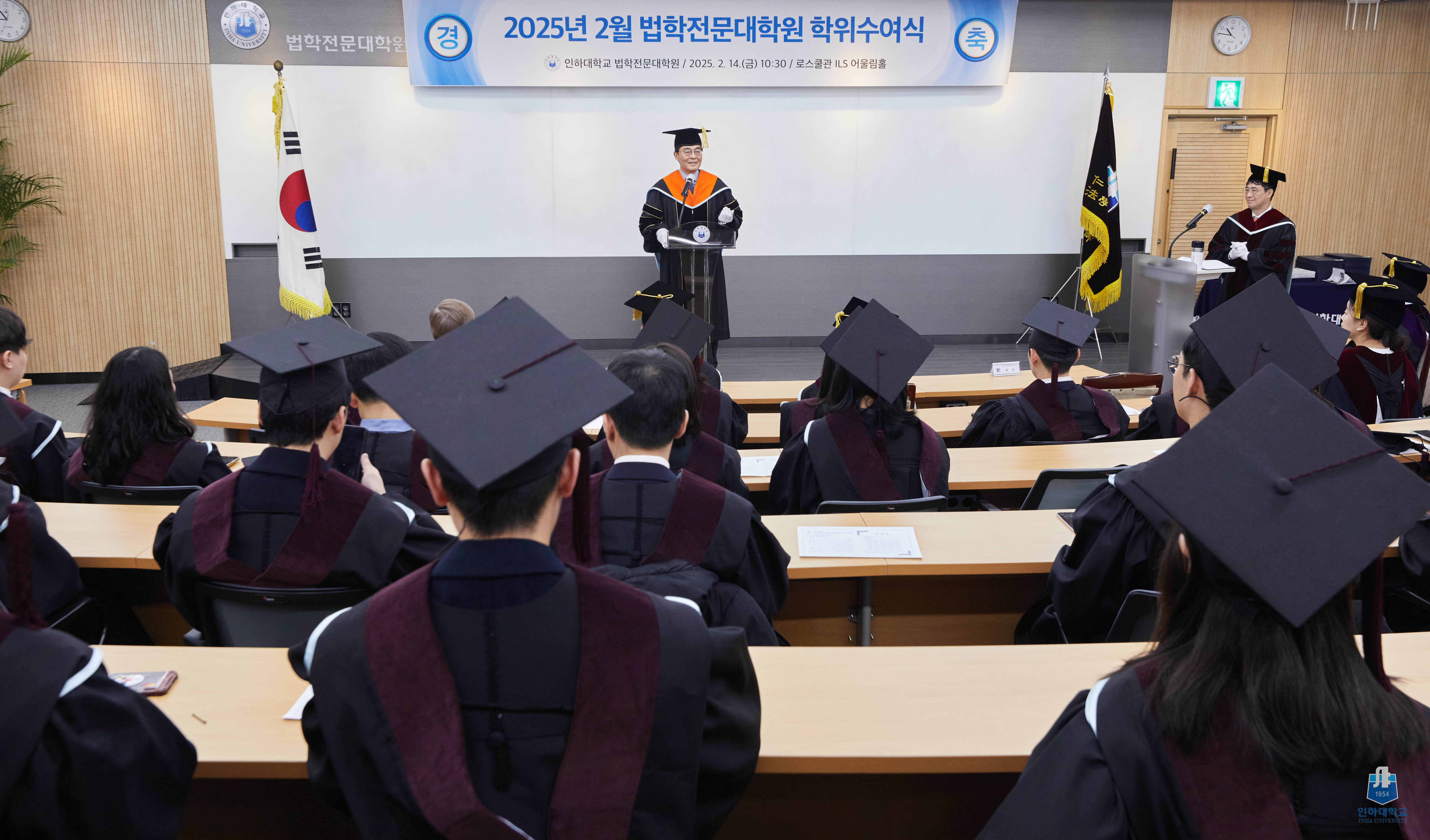 ▲ 한국 최고의 카지노사이트 14일 로스쿨관 ILS 어울림홀에서 열린 2025년 2월 법학전문대학원 학위수여식에서 조명우 총장이 축사를 하고 있다.