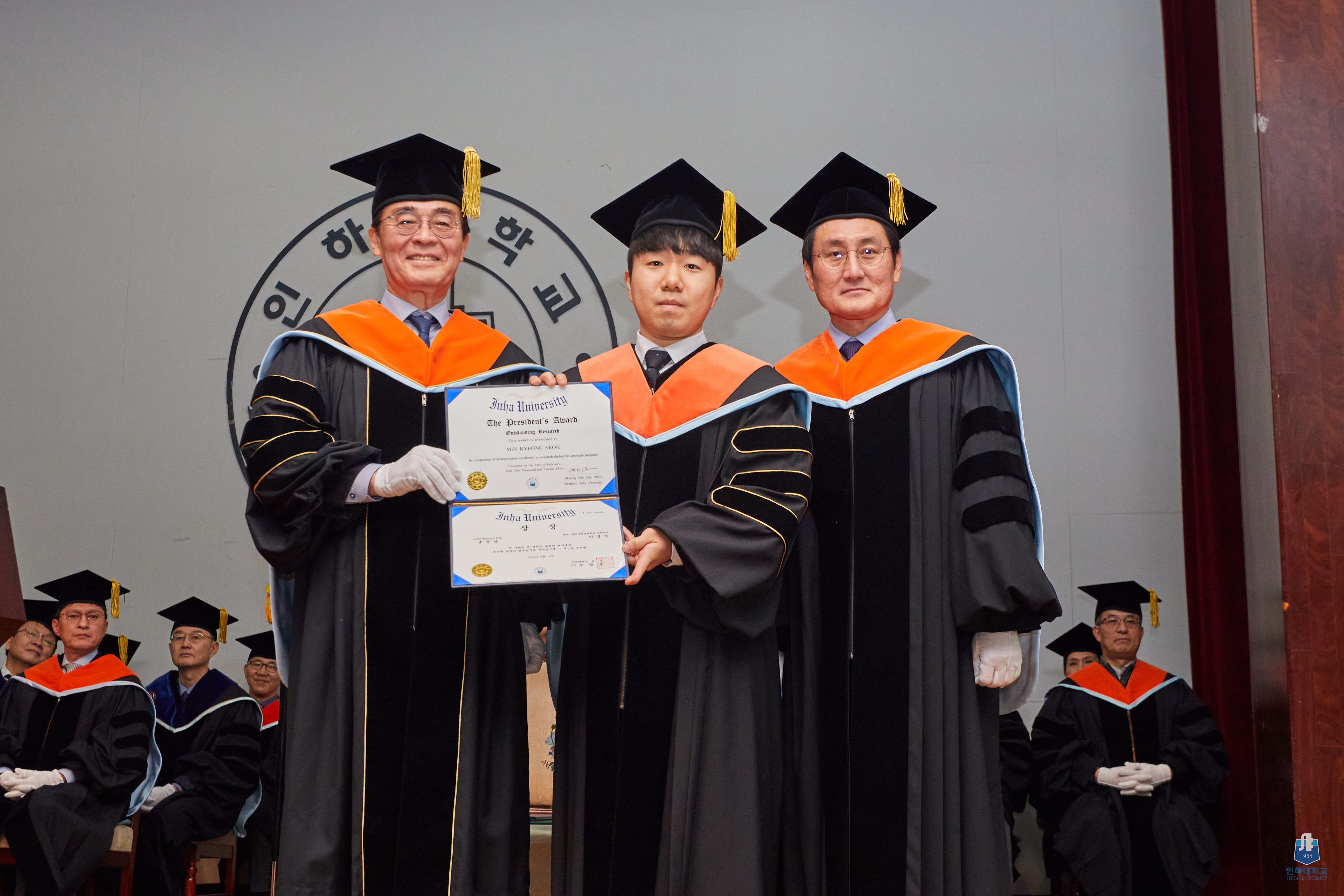 ▲ 14일 본교 대강당에서 열린 한국 최고의 카지노사이트 2월 학위수여식에서 조명우 총장이 총장상을 수여하고 있다.