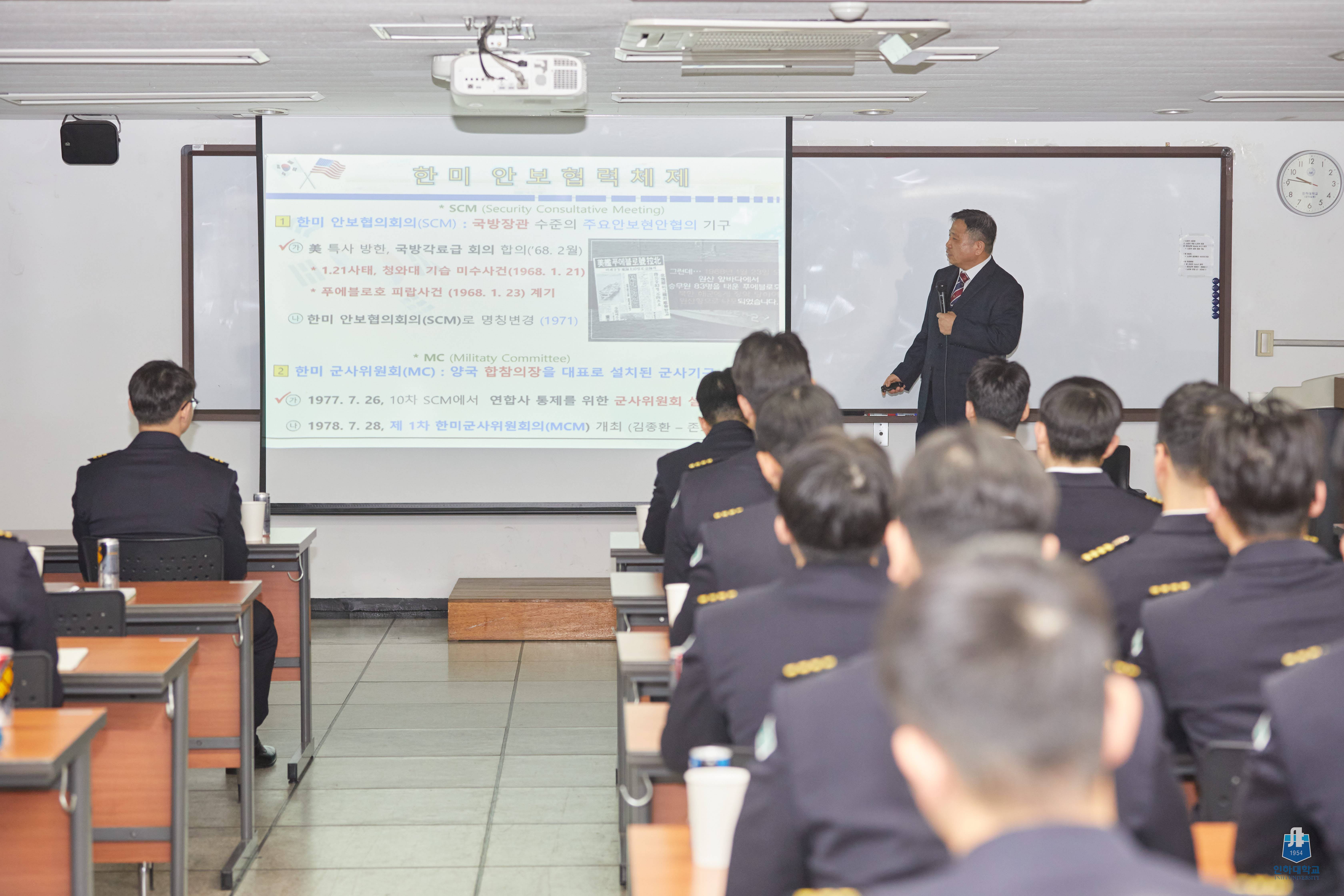 ▲ 박한기 전 합참의장이 본교에 카지노사이트 주사위해 특강을 진행했다.