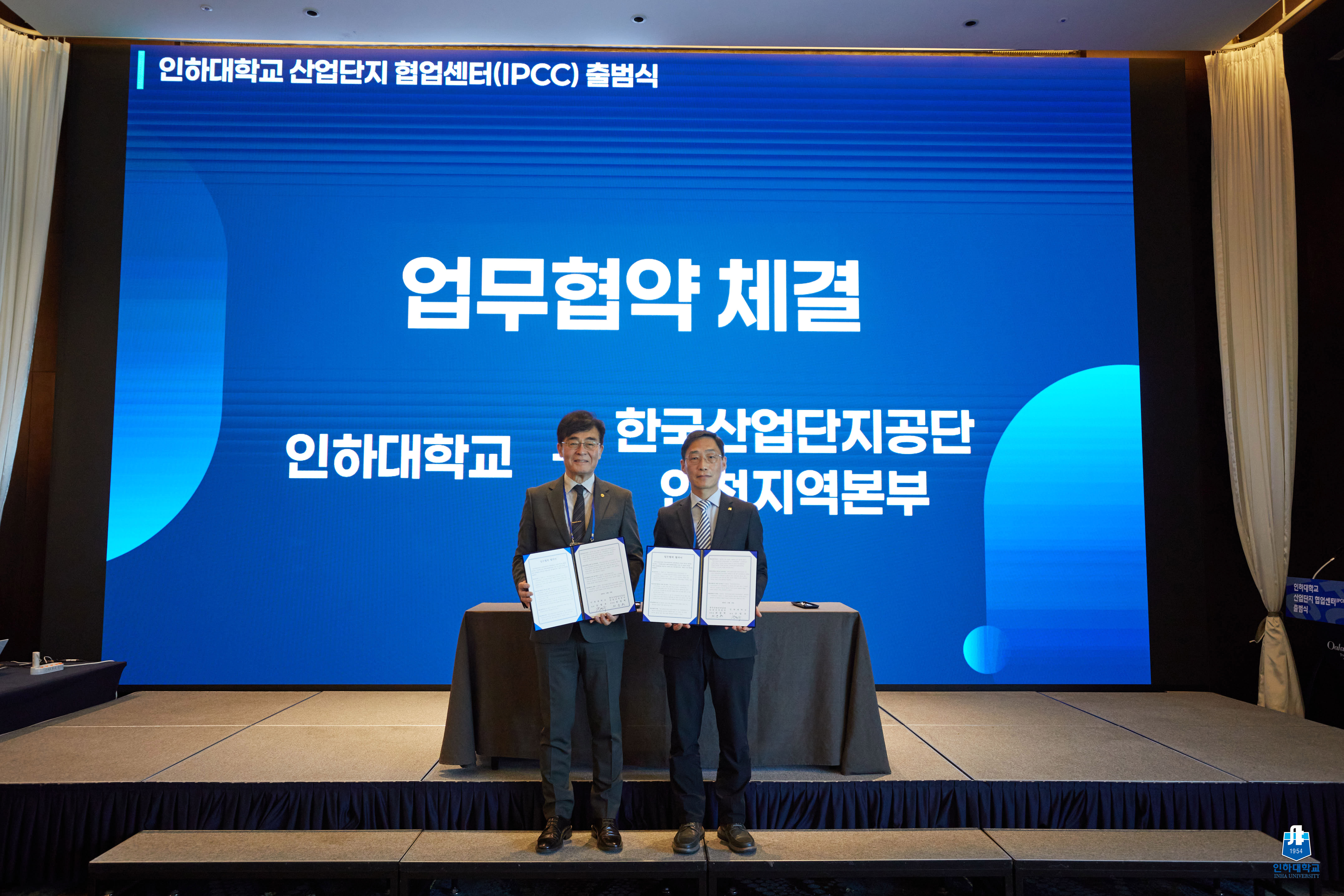 ▲ 산업단지협업센터 출범식에서 인하대와 한국산업단지공단 인천지역본부가 업무협약을 체결했다