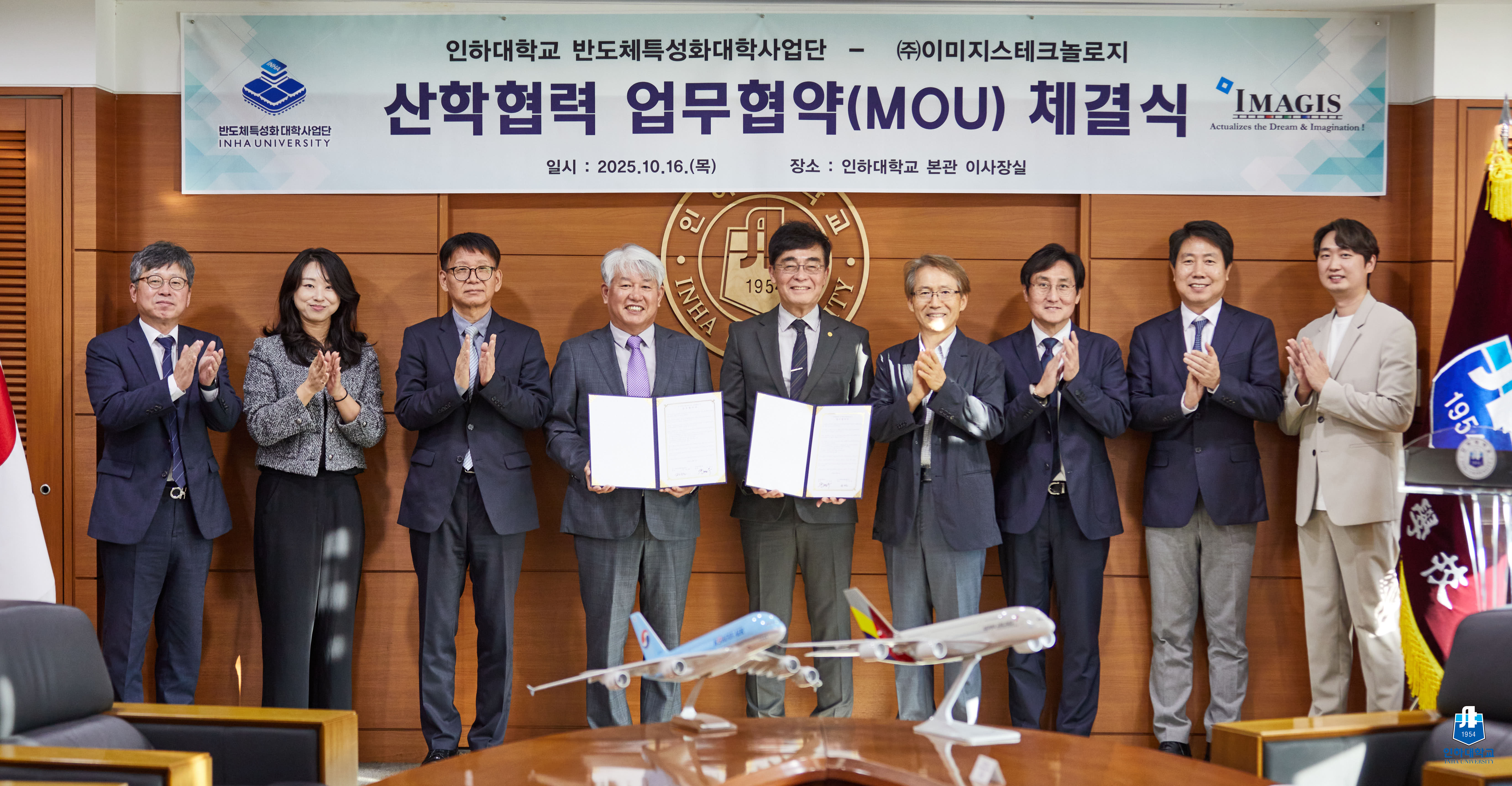 ▲16일 인하대와 이미지스테크놀로지가 산학협력 업무협약을 체결한 뒤 기념사진을 촬영하고 카지노사이트 먹튀검증.