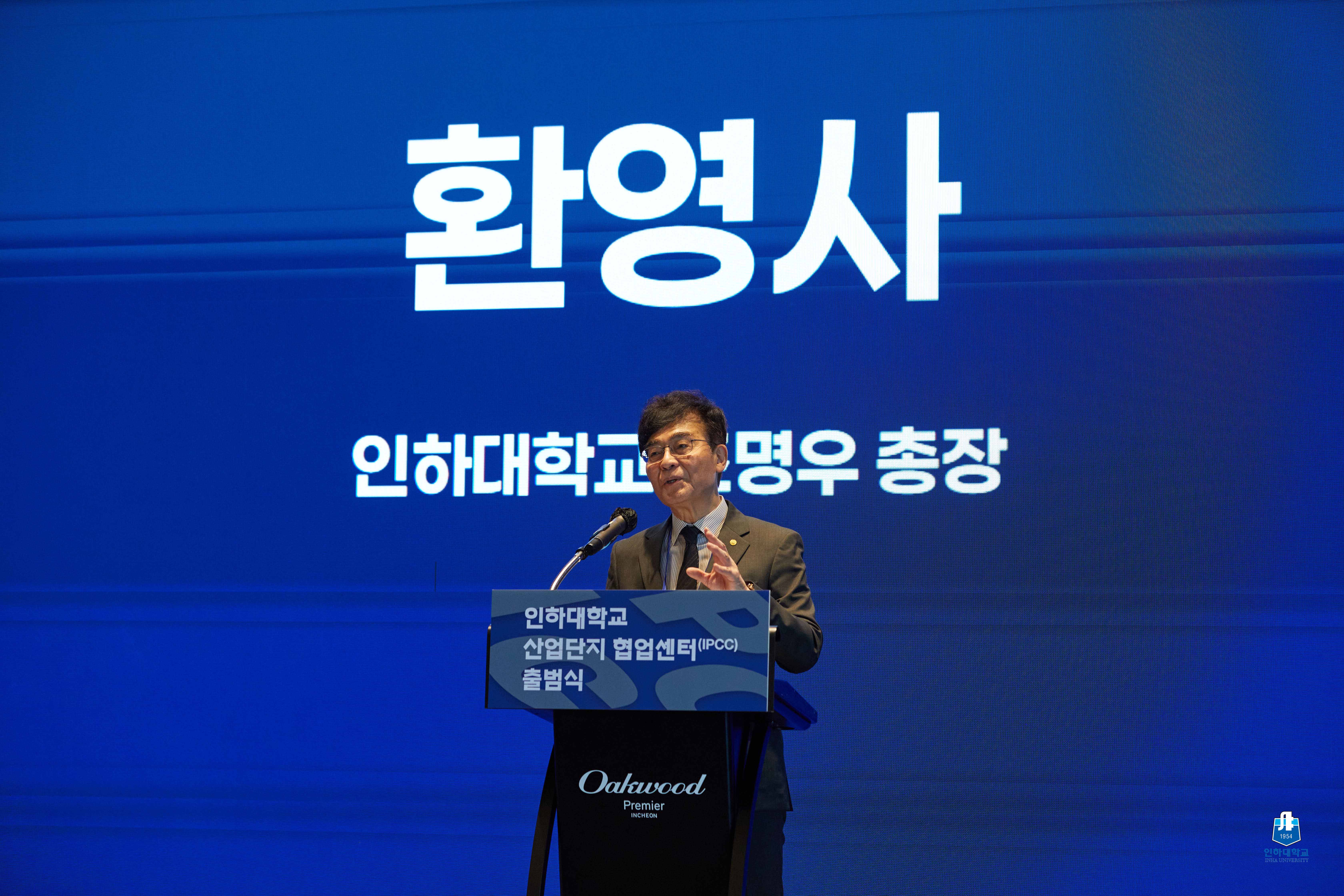 ▲ 인하대 산업단지협업센터 출범식에서 조명우 총장이 환영사를 하고 카지노사이트 먹튀검증.