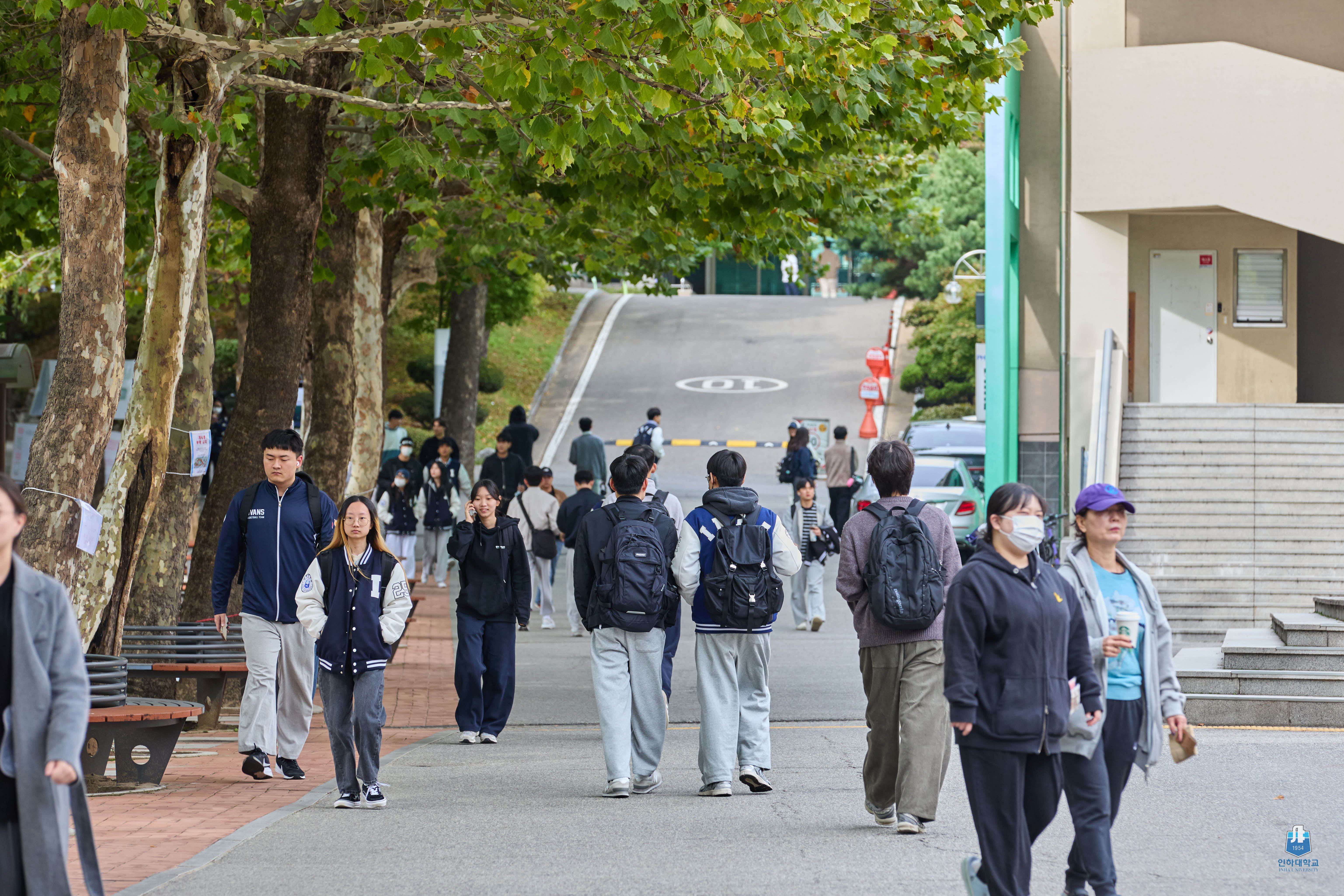 ▲ 가을을 맞이한 인하대학교, 여유롭게 캠퍼스를 거닐고 있는 학생들.