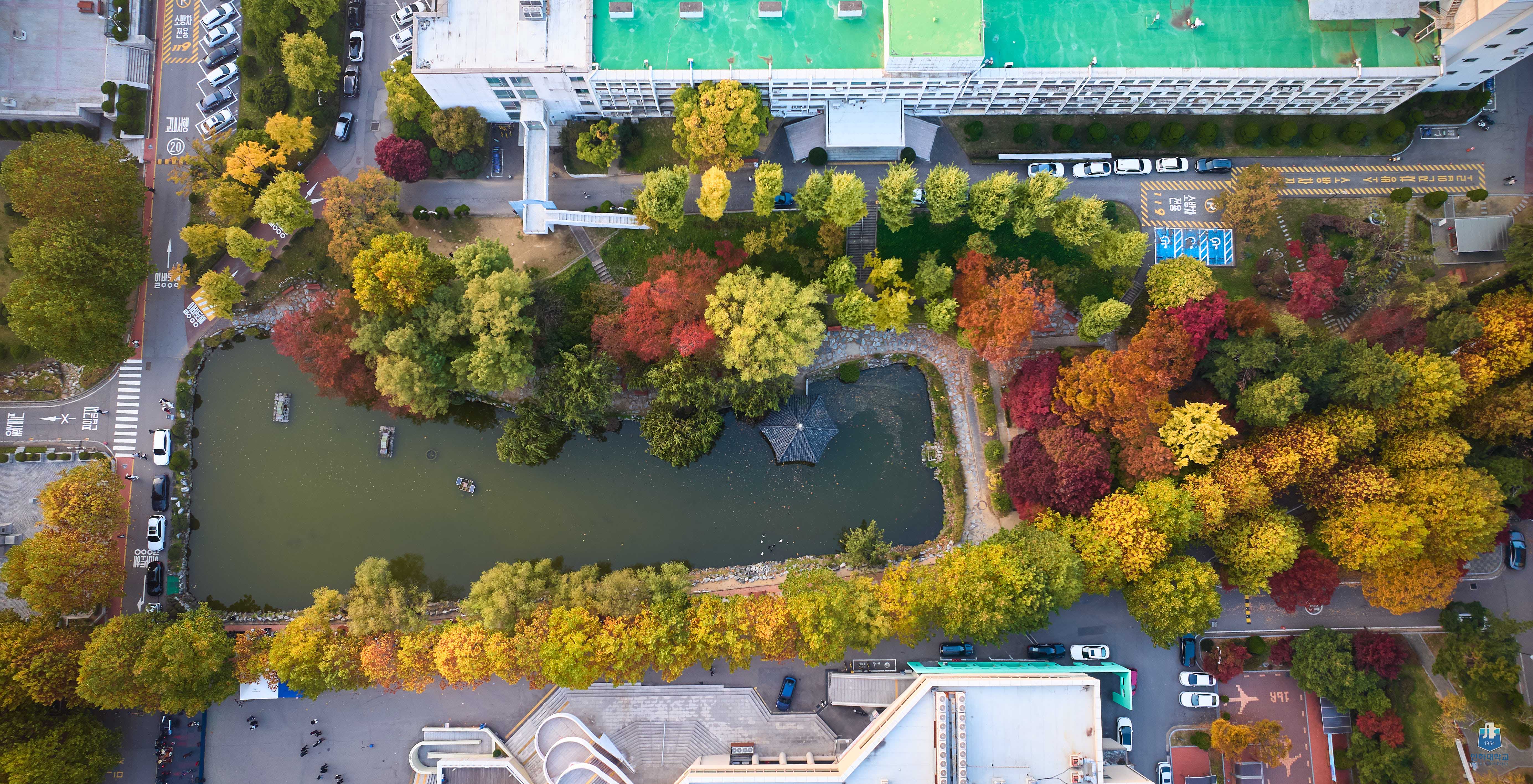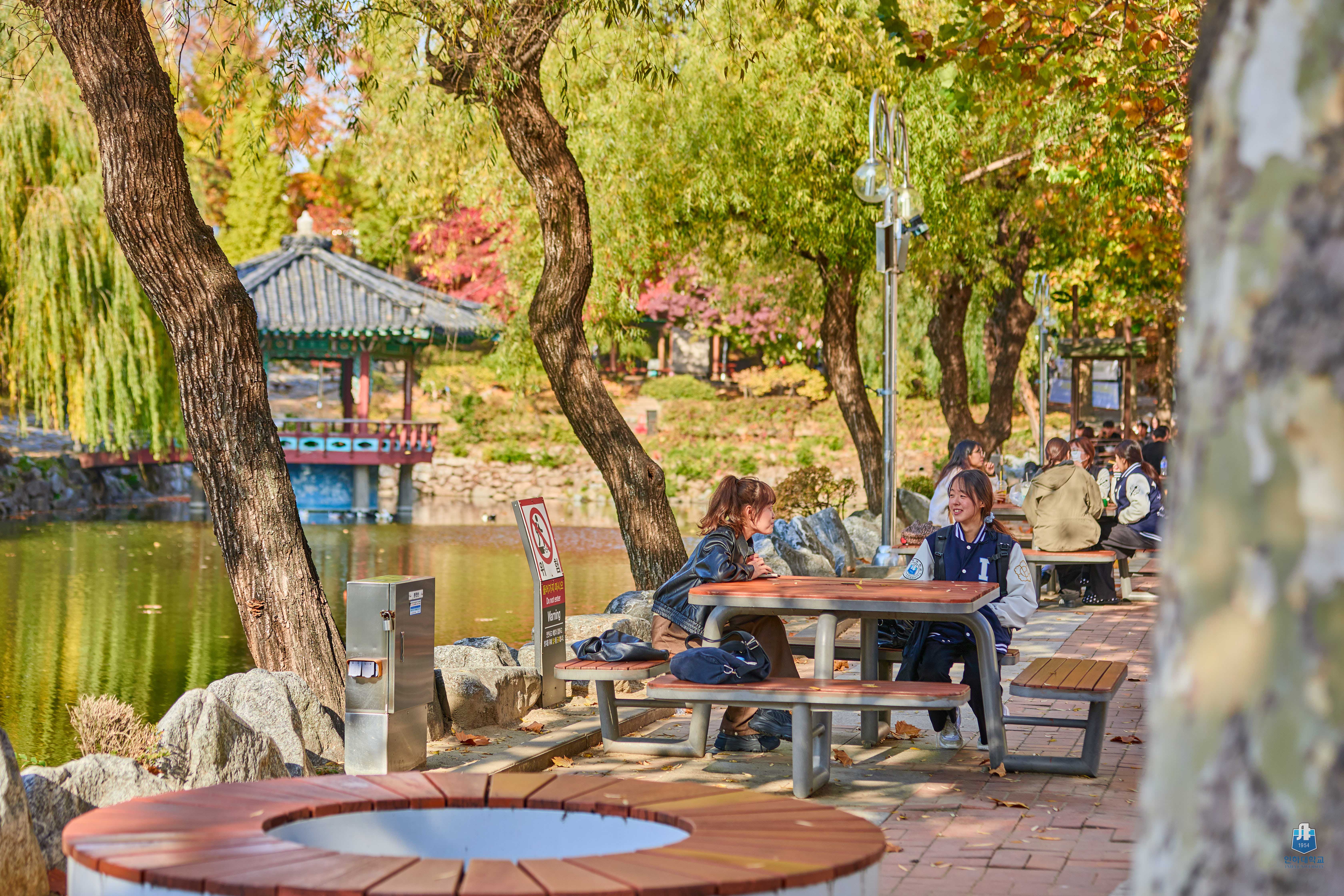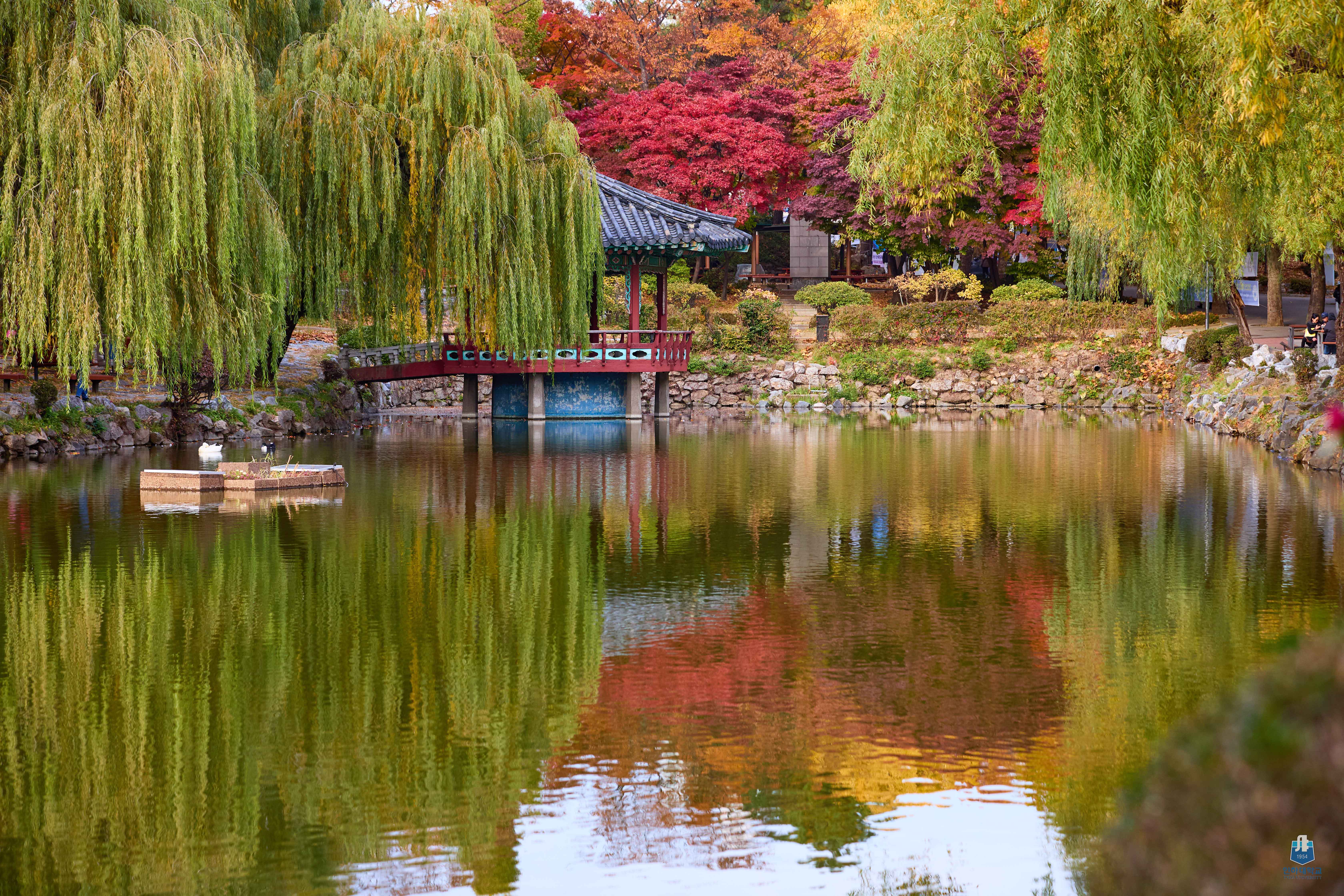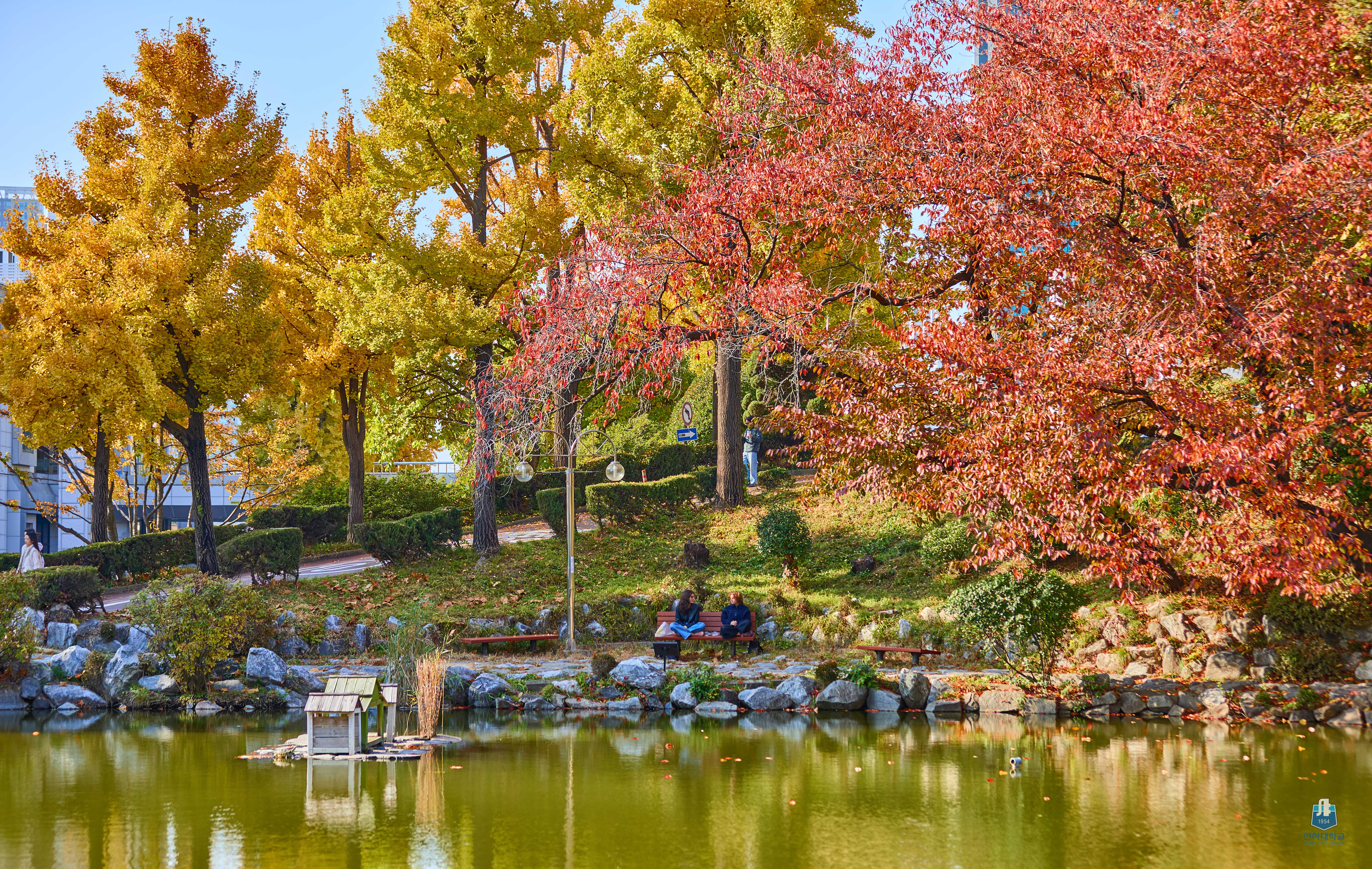 ▲단풍으로 둘러싸인 인경호, 잔잔한 가을빛이 머무는 곳.