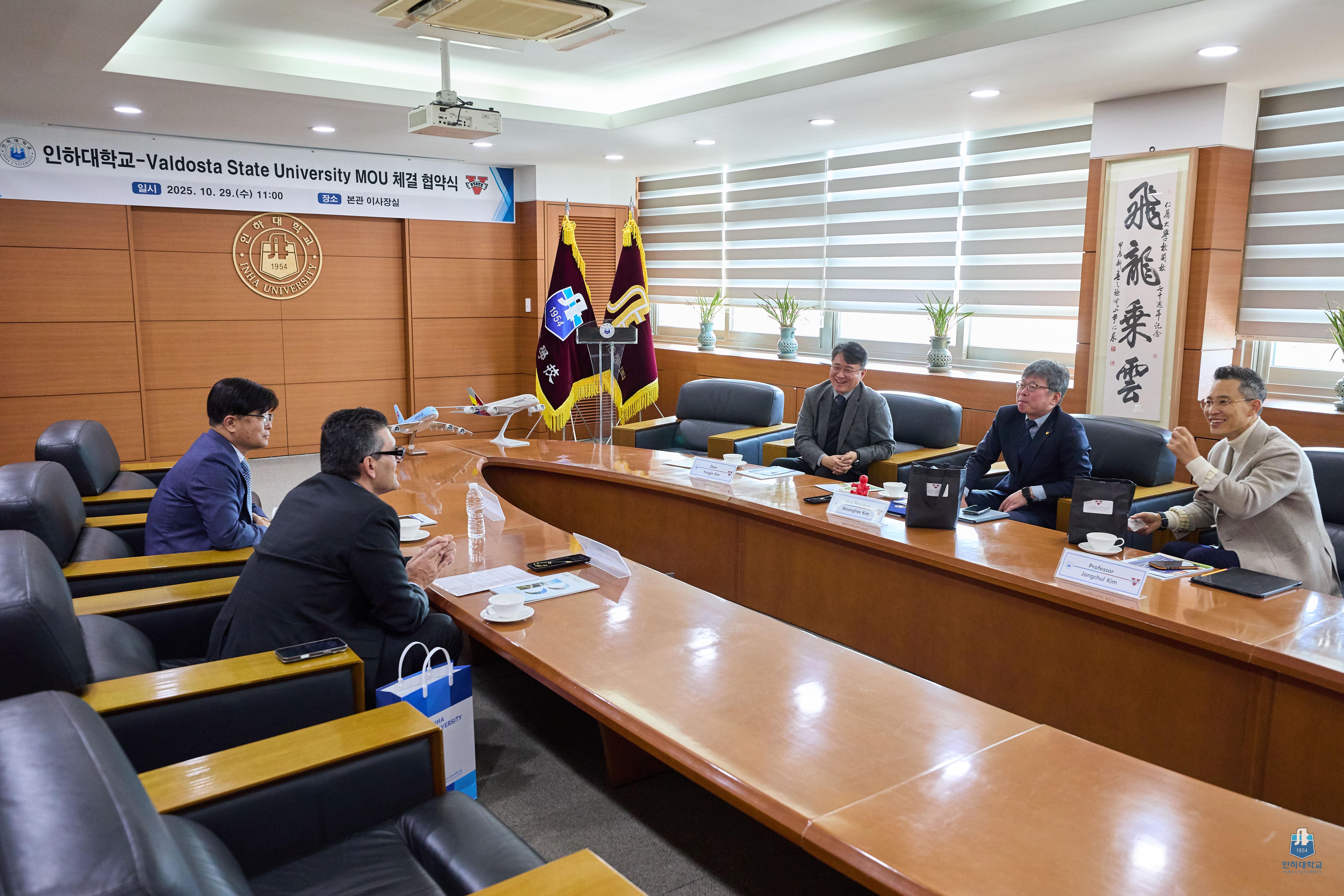 ▲본교와 발도스타 주립대학교 MOU 체결 협약식에서 참석자들이 기념사진을 촬영하고 있다.