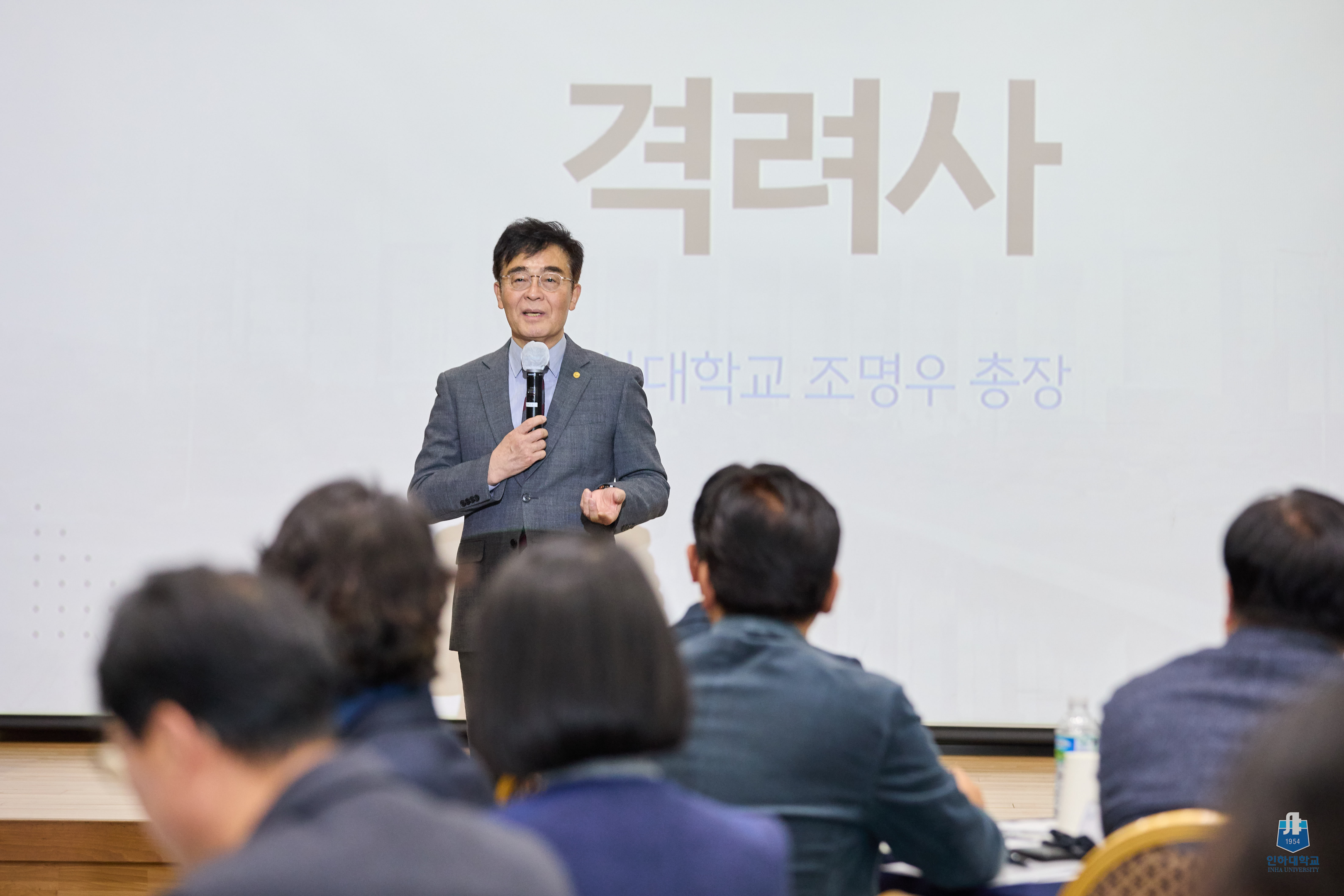 ▲조명우 총장이 2026학년도 첨단산업 아카데미 학생 모집 기업 설명회에서 격려사를 하고 있다.
