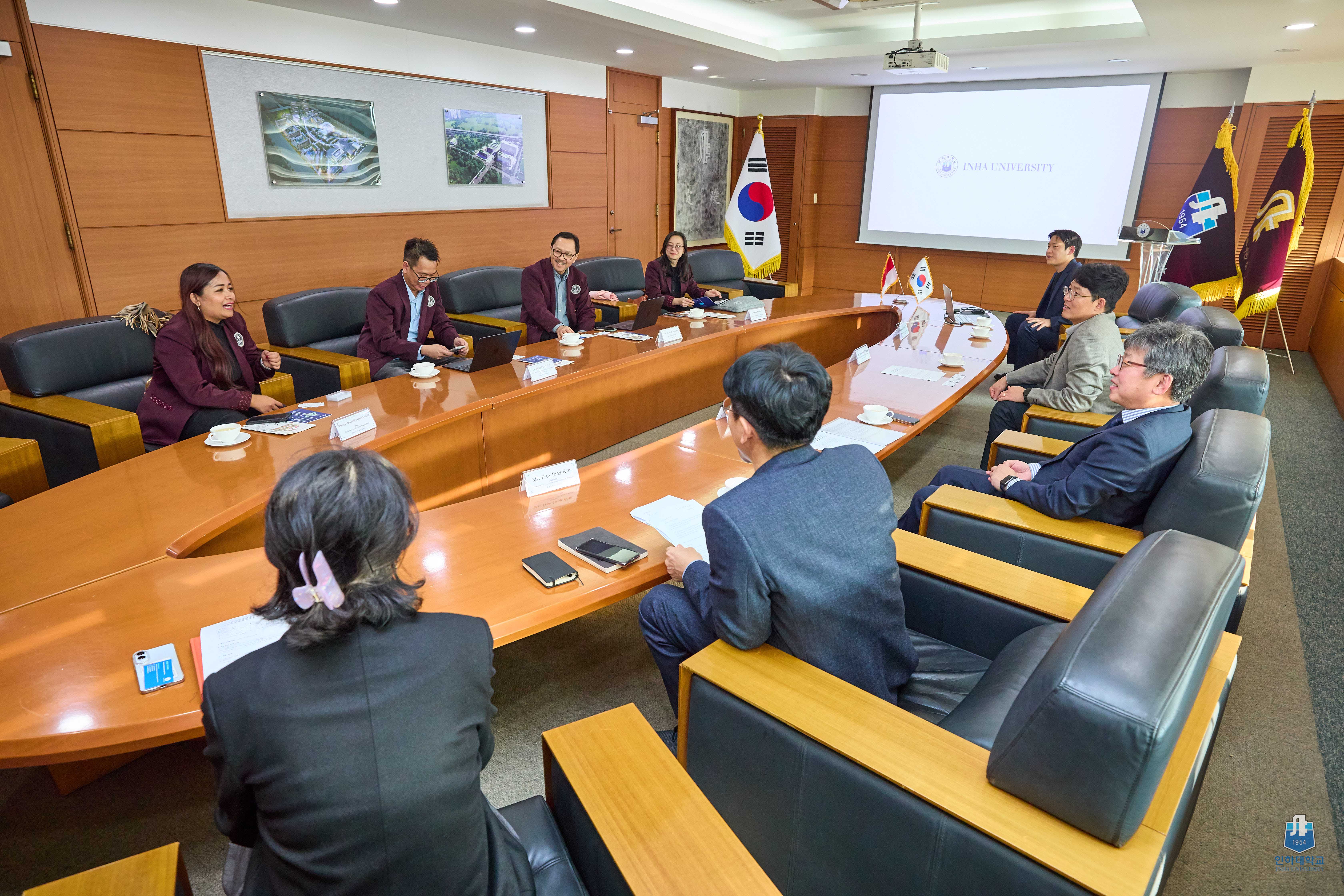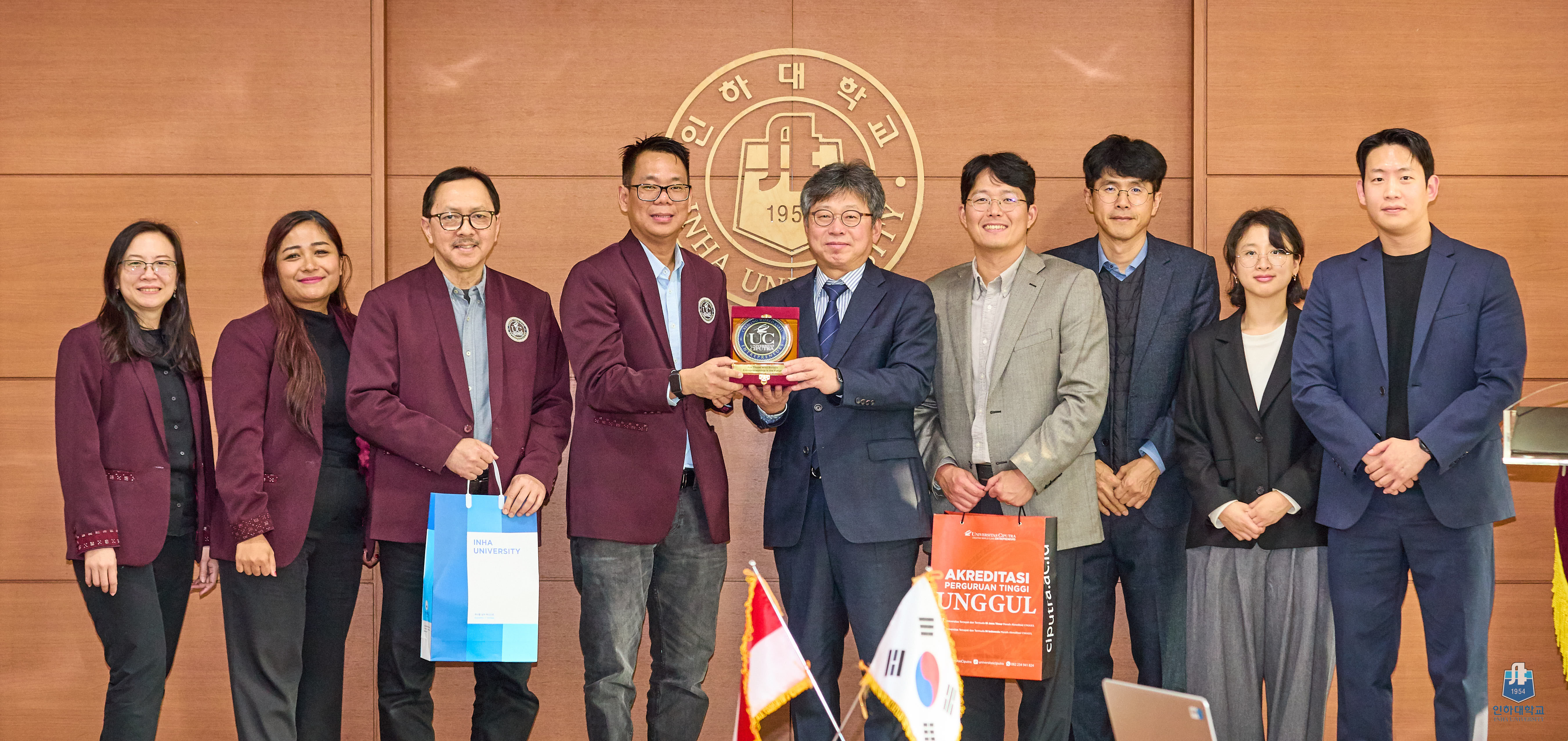 ▲ 7일 김웅희 대외부총장 등이 본교에 방문한 인도네시아 찌푸트라 대학 관계자들과 기념사진을 촬영하고 있다.