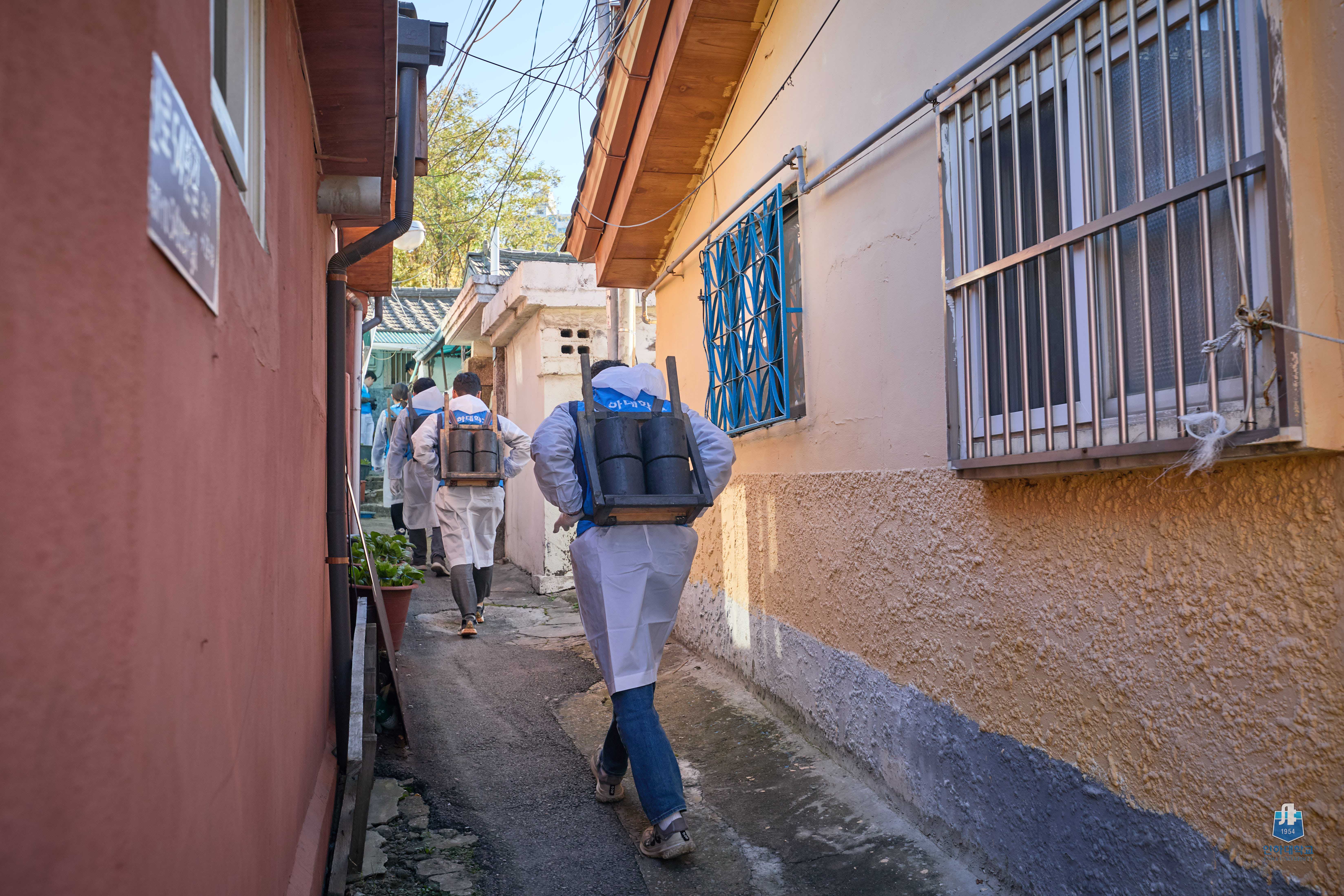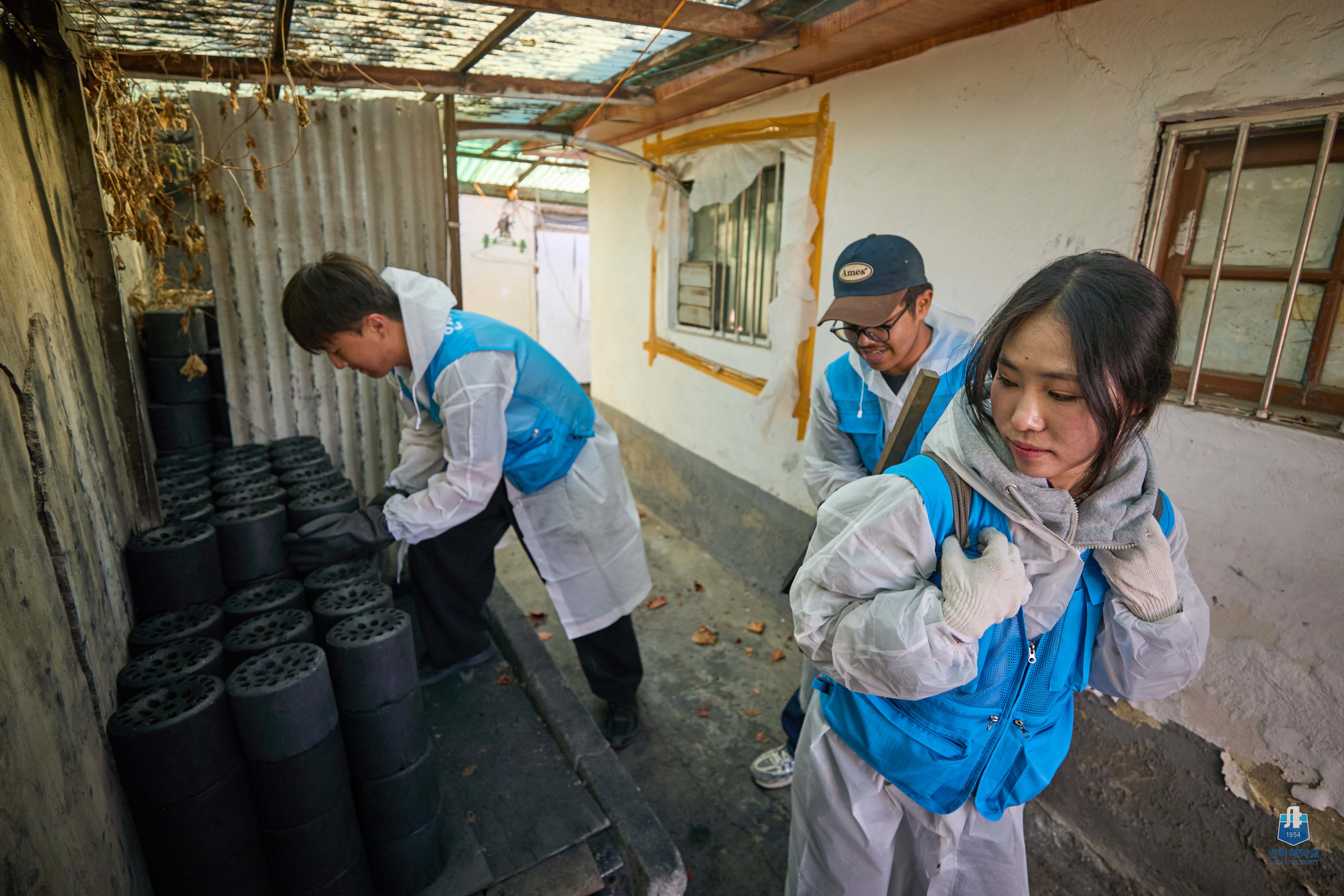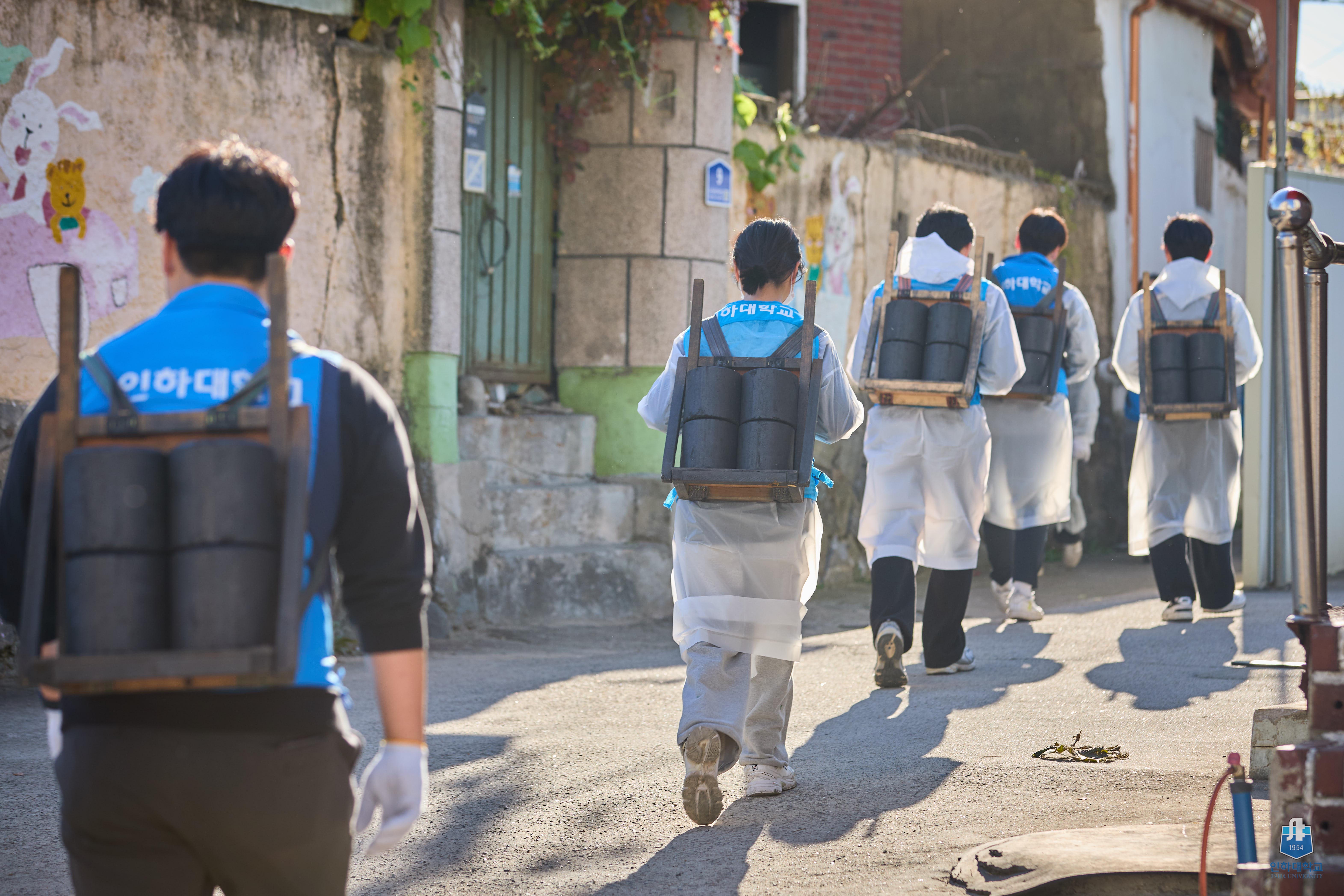 ▲ 대한민국 1도 올리기, 사랑의 연탄 나눔’ 행사 참여자들이 연탄을 배달하고 있다.