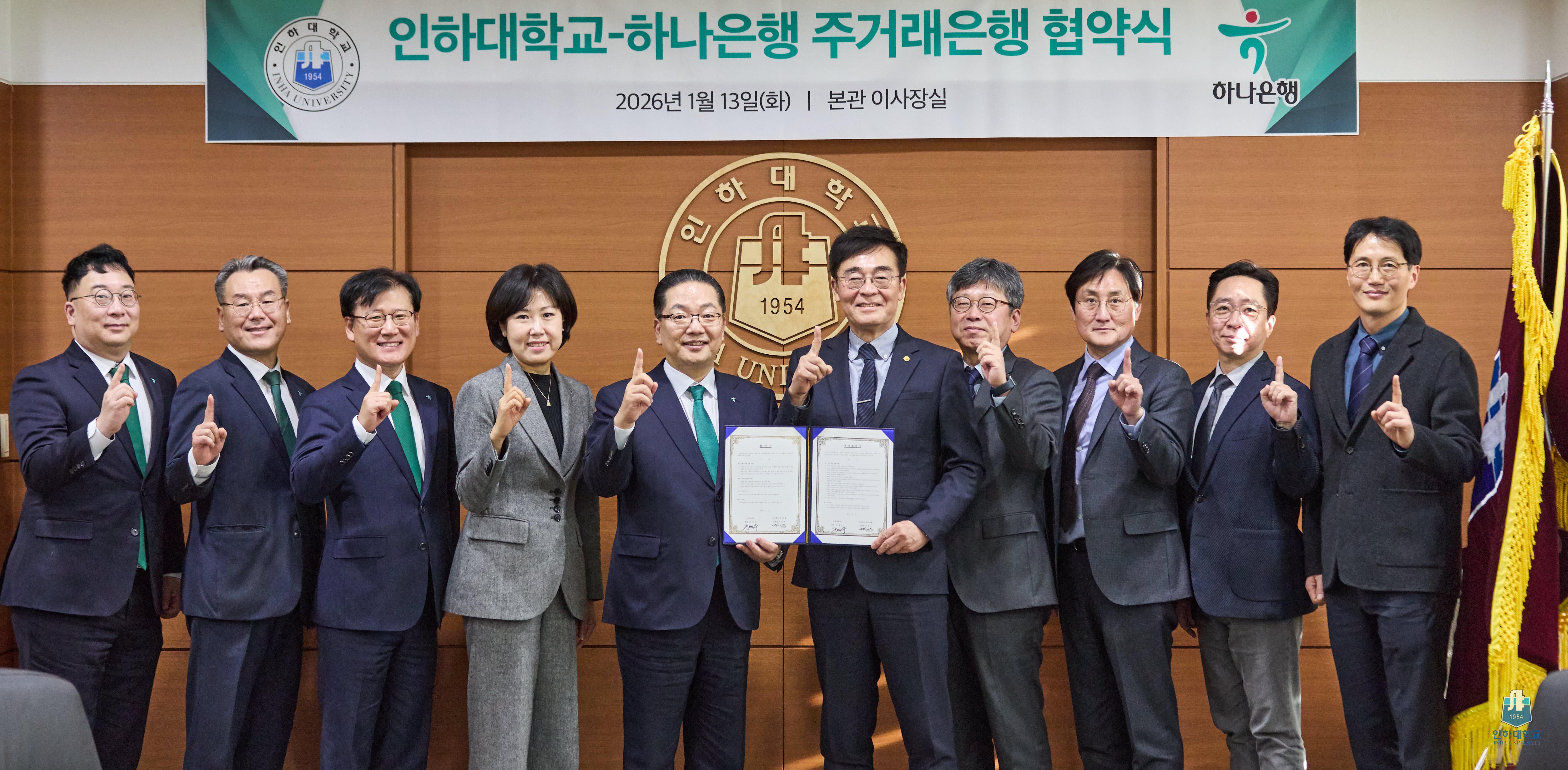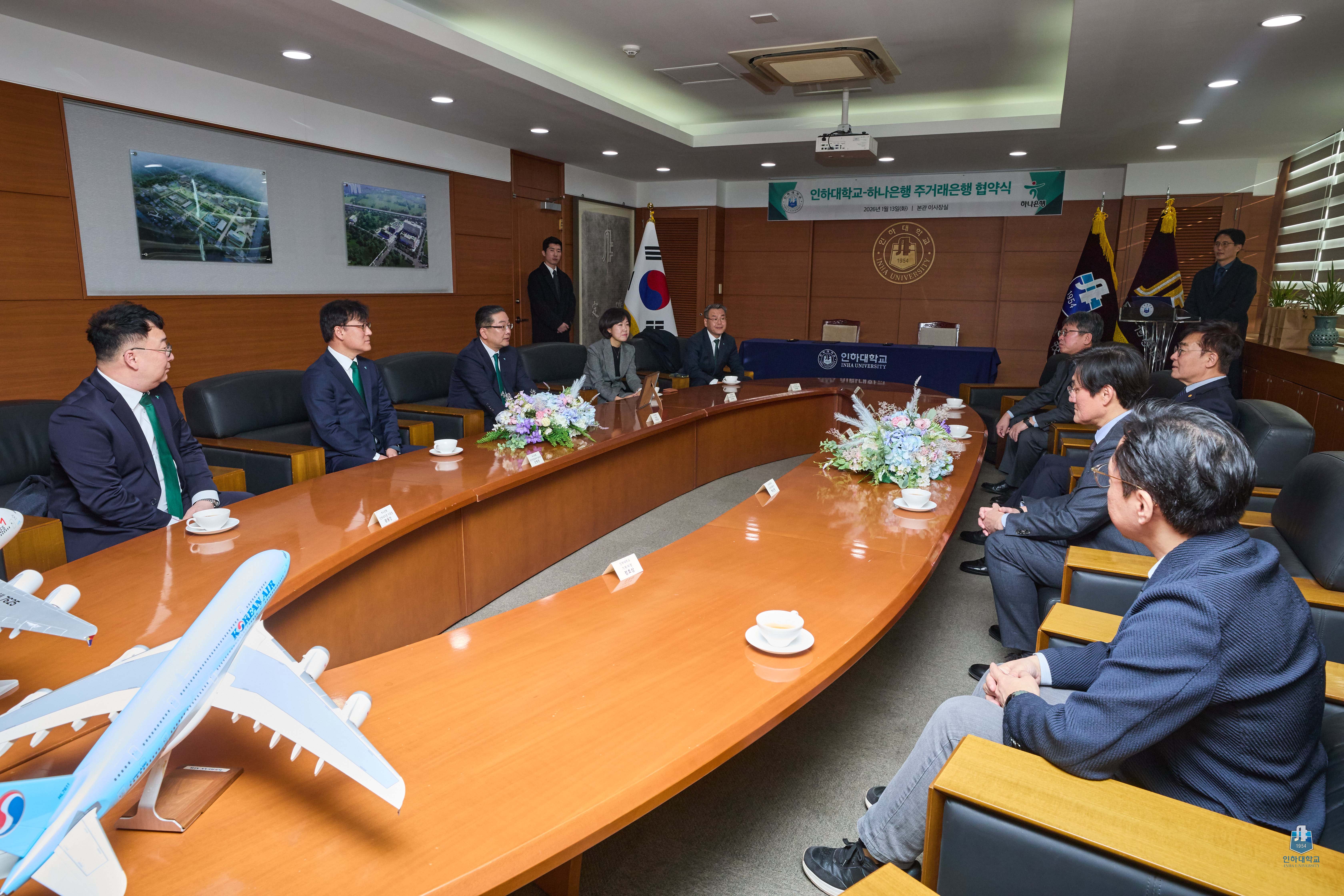 ▲ 13일 본관 이사장실에서 인하대학교-하나은행 업무카지노사이트식을 진행했다.